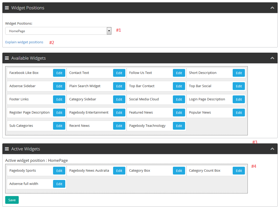 - Also home page is rendered using widget position "Home page".
