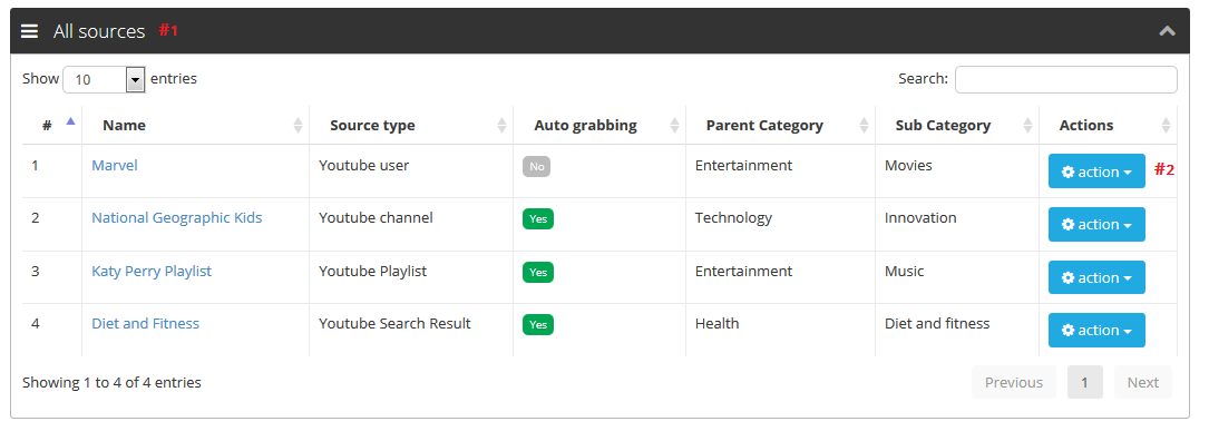 - Create unlimited youtube vide sources
