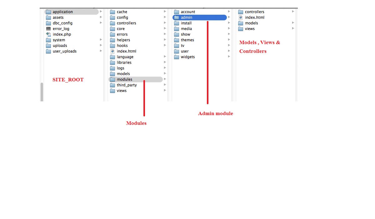 We've used codeigniter version 2.0.3 as framework. As you know codeigniter basically is a MVC frame work. For videopilot we have used the HMVC version of Codeigniter. The H of HMVC stands for Hierarchical. In normal MVC model controllers, models and views are organized under ROOT/application directory. But in HMVC, there is one more level "Modules" under ROOT/application directory.